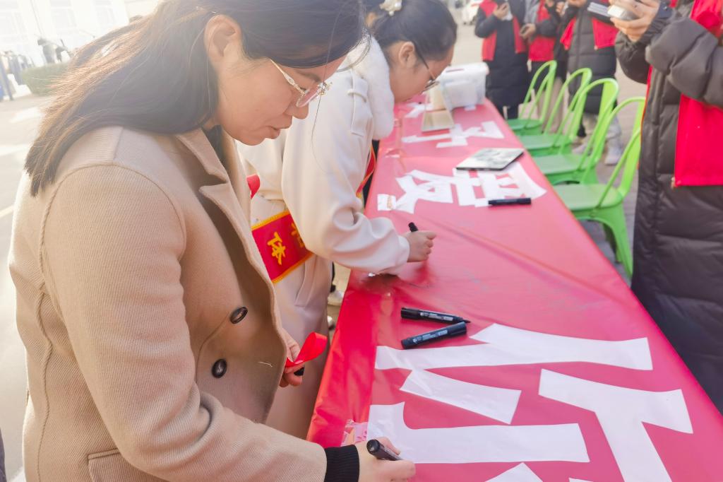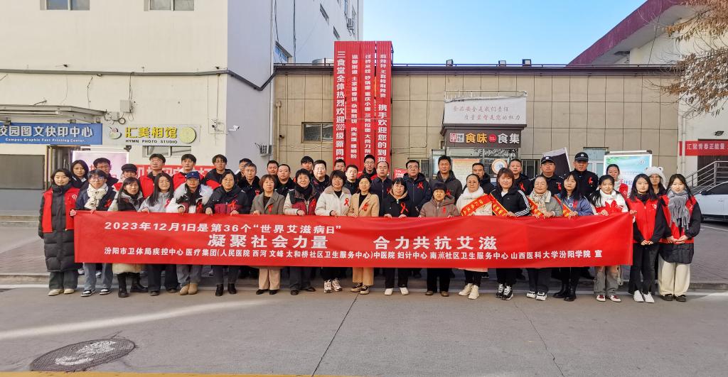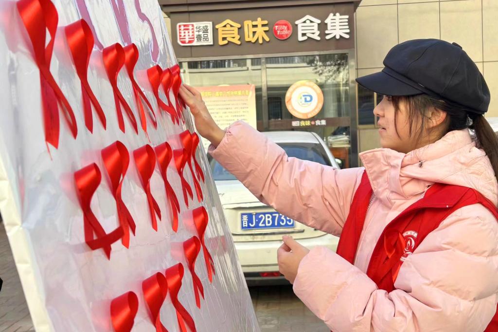12月1日中午11時,校醫(yī)室、校團委聯(lián)合汾陽市衛(wèi)體局疾控中心、汾陽市醫(yī)療集團、汾陽市中醫(yī)院、汾陽市婦幼保健計劃生育服務中心在我校食味食集餐廳門口舉辦了宣傳教育活動。學生工作處、后勤保障處等部門大力支持與配合,確保活動順利進行?;顒蝇F(xiàn)場,各單位精心準備了豐富的宣傳教育資料和互動環(huán)節(jié),吸引了眾多師生參與。醫(yī)務工作者們?yōu)橥瑢W們提供艾滋病自愿咨詢檢測服務,解答關(guān)于艾滋病的相關(guān)問題,幫助同學們樹立正確的防護觀。我校學生志愿者們與醫(yī)務工作者一起為路過的師生分發(fā)宣傳教育資料和計生物品,引導同學們在橫幅上簽名,在紅絲帶上寄語并貼到宣傳展板上。