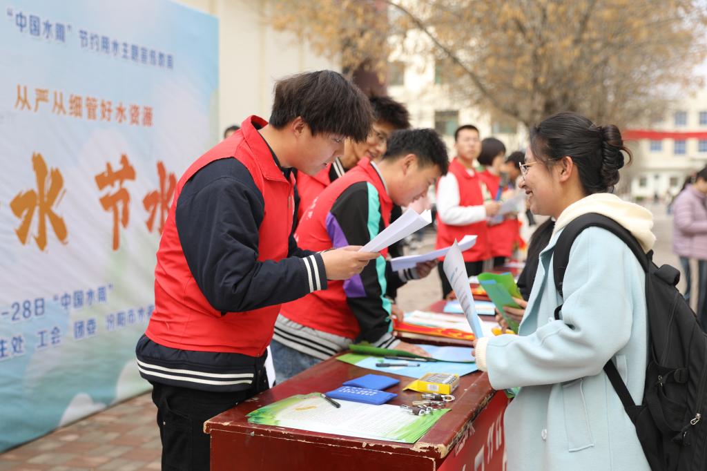 活動現(xiàn)場,工作人員和志愿者設(shè)置主題宣傳展板、發(fā)放節(jié)水宣傳資料,向過往師生講解節(jié)約用水、水法規(guī)等方面知識,組織大家開展主題簽名、知識問答等,引導(dǎo)廣大師生增強節(jié)水意識,樹立節(jié)水觀念,做節(jié)約用水的倡導(dǎo)者、踐行者。