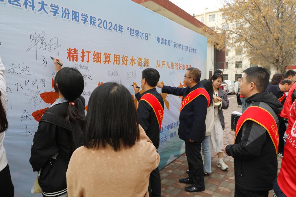 今年3月22日是第三十二屆“世界水日”,3月22日至28日是第三十七屆“中國水周”。3月25日上午,我校后勤保障處聯(lián)合相關(guān)部門在食味食集餐廳門口開展了以“精打細(xì)算用好水資源,從嚴(yán)從細(xì)管好水資源”為主題的宣傳活動。黨委委員、副院長李榮江,黨委委員、黨委宣傳部部長樊瑞晶,后勤保障處處長王秉澤,工會主席張益民,學(xué)生工作部部長常明亮,團(tuán)委書記王建榮等出席活動。