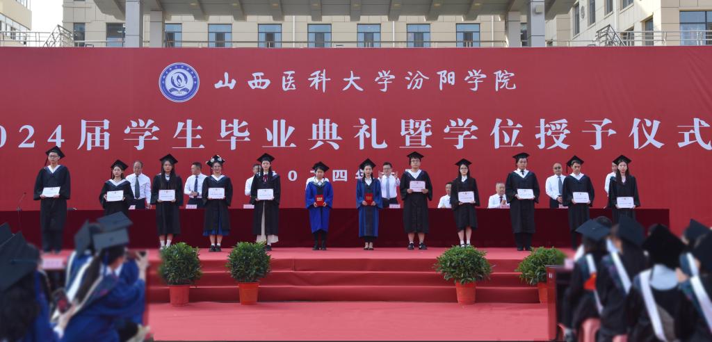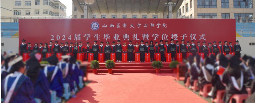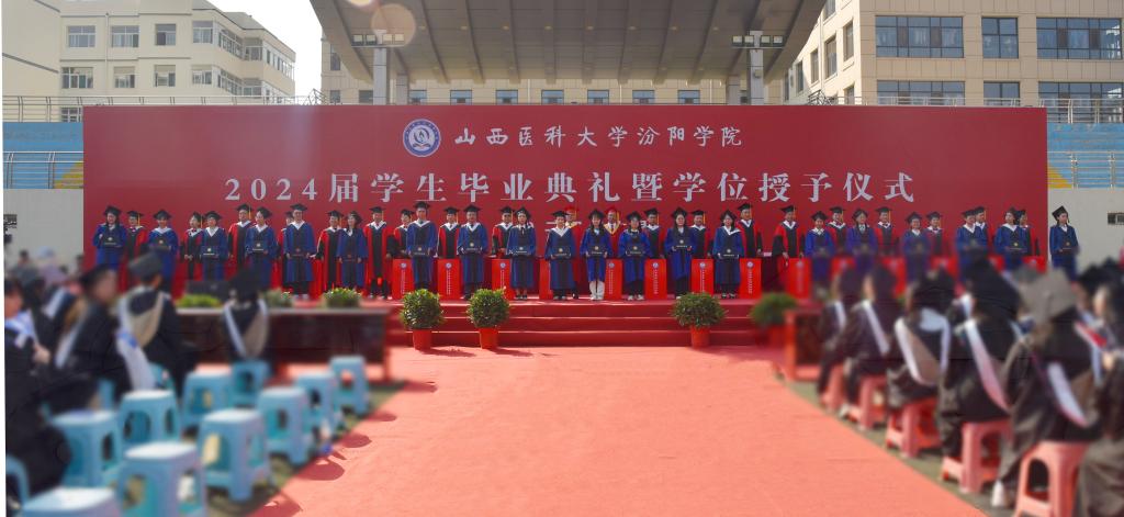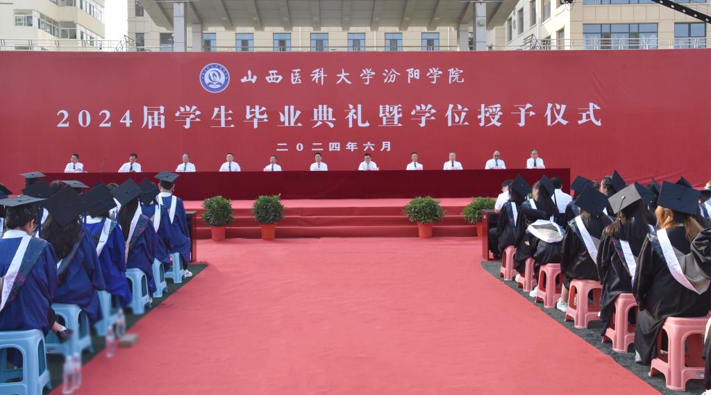 6月28日上午,我校隆重舉行2024屆畢業(yè)生畢業(yè)典禮暨學(xué)位授予儀式。山西醫(yī)科大學(xué)黨委常委、副校長焦向英;汾陽市委書記李正奎,市委副書記、市長賈永祥出席。我校黨委書記閆敬來,黨委副書記、院長孟小平,黨委委員、紀委書記尹錫昊,黨委委員、副院長陳振文,黨委委員、副院長李榮江,山西省汾陽醫(yī)院黨委書記郭任維、黨委副書記李建國、副院長王耀勇,我校相關(guān)職能部門負責(zé)人,各系(部)書記、主任、副書記、分團委書記,各畢業(yè)班輔導(dǎo)員、學(xué)業(yè)導(dǎo)師、教師代表及2024屆全體畢業(yè)生參加了畢業(yè)典禮。畢業(yè)典禮暨學(xué)位授予儀式采取線上線下同步進行,校官方新媒體平臺進行直播,全媒體觀看人數(shù)10.2萬、獲贊5.8萬。