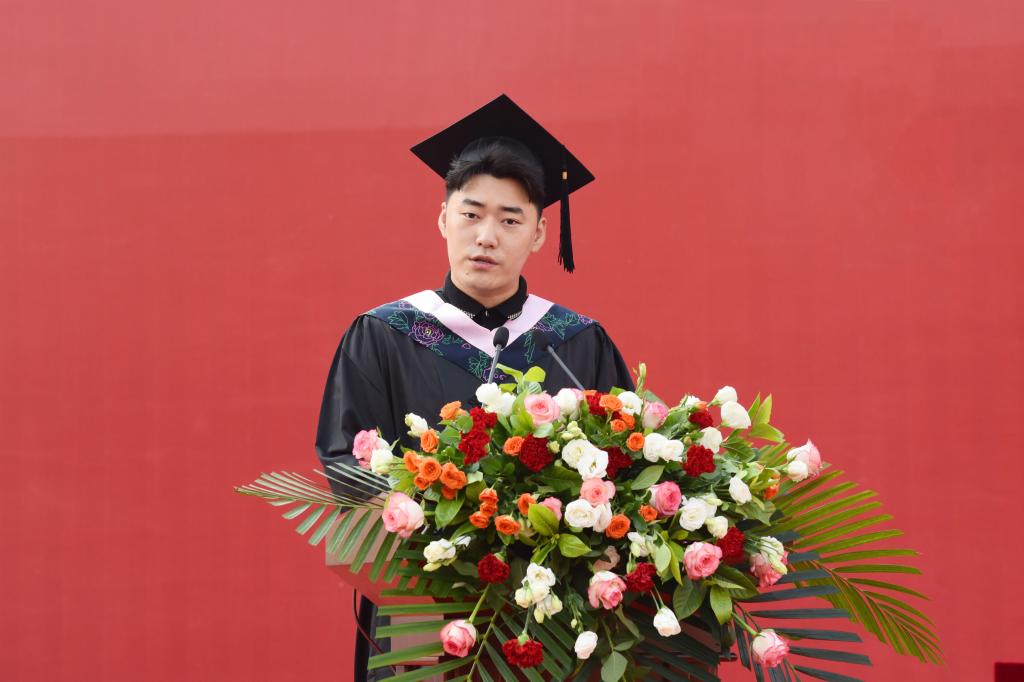畢業(yè)生代表、衛(wèi)生信息管理系馮昊同學(xué)發(fā)言,表達了對母校的深情祝福、對老師的感激之情。在校生代表、臨床醫(yī)學(xué)系龔?fù)瑢W(xué)發(fā)言,表達了對學(xué)長學(xué)姐的誠摯祝福。教師代表、醫(yī)學(xué)檢驗系程凱副教授與同學(xué)們分享了寶貴的人生感悟,勉勵同學(xué)們牢記“仁術(shù)愛仁、精益求精”的校訓(xùn)精神,心懷大愛,腳踏實地,做奮斗之人。