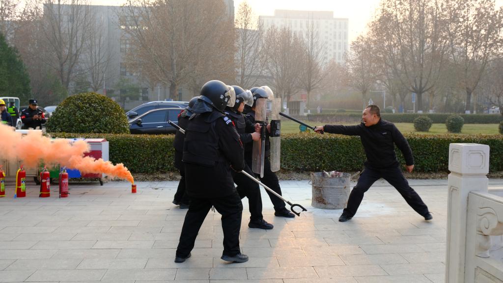 為宣傳和普及反恐防暴應(yīng)急知識(shí)和技能,貫徹落實(shí)學(xué)校安全工作部署,增強(qiáng)廣大師生員工應(yīng)對(duì)暴力事件的危機(jī)意識(shí),提高安保人員應(yīng)對(duì)處置暴恐突發(fā)事件的應(yīng)急能力,最大限度降低暴恐事件可能給學(xué)校帶來的危害,12月11日下午,我校保衛(wèi)處聯(lián)合汾陽市公安局辰北派出所組織學(xué)校安保人員開展反恐防暴應(yīng)急演練,辰北派出所所長李劍國、副所長于哲及三名警員,我校保衛(wèi)處處長梁勇剛及相關(guān)負(fù)責(zé)人參加。