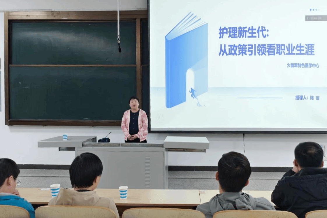 陳潔老師圍繞護理職業(yè)發(fā)展展開了全面深入的講授。她首先通過視頻展示了火箭軍特色醫(yī)學中心的風貌,激發(fā)學生對護理職業(yè)的熱情。她強調,護理職業(yè)不僅僅是謀生手段,而是實現人生價值的舞臺,建議同學們明確職業(yè)目標并制定科學規(guī)劃。她將護士職業(yè)發(fā)展路徑分為探索期、創(chuàng)立期和成熟期三個階段,并通過真實案例為學生提供借鑒,鼓勵同學們綜合橫向與縱向發(fā)展。在政策解讀方面,陳潔老師結合我國人口老齡化的社會背景,詳細分析了國家醫(yī)養(yǎng)結合政策為護理專業(yè)帶來的廣闊就業(yè)空間,她指出護理人才缺口大,發(fā)展?jié)摿o限。此外,在護理科研方面,她強調科研應立足臨床有效性,推動學科進步。最后,陳潔老師勉勵同學們要抓住政策機遇,持續(xù)提升發(fā)展,實現職業(yè)目標與自我價值。