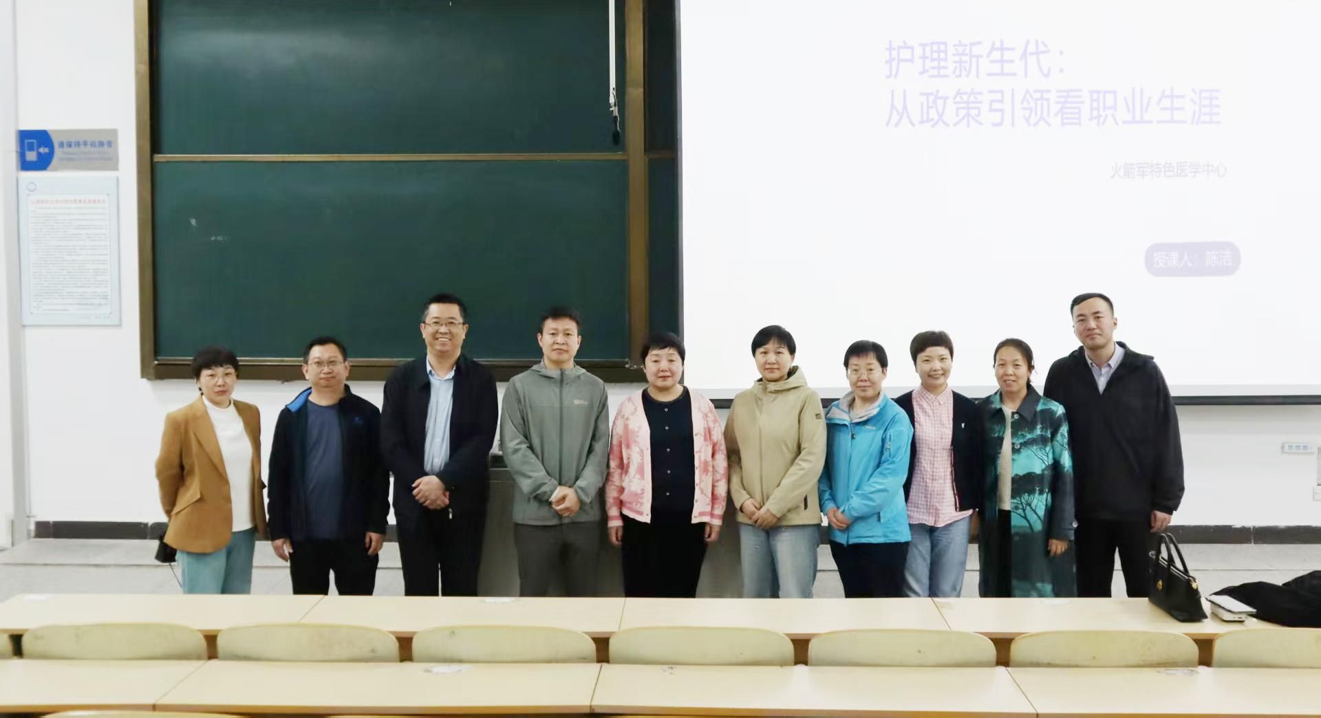 為幫助大三學子準確把握政策機遇、科學規(guī)劃職業(yè)發(fā)展,4月18日,護理學系在第三階梯教學樓一教室成功舉辦了主題為“護理新生代:從政策引領看職業(yè)生涯”的專題講座。本次講座特邀火箭軍特色醫(yī)學中心主任護師、碩士生導師陳潔,呼吸科護士長、副主任護師白潔,胃食管外科護士長、副主任護師宋慶擔任主講嘉賓。火箭軍特色醫(yī)學中心護理部主任王承竹、骨科護士長張秋紅、肝膽外科護士長張建國,我校教務處副處長王艷鋒、護理學系黨總支副書記申濤、教務處實踐教學管理科副科長郭崢、護理學系分團委書記康智芳等蒞臨現場。講座吸引了眾多學生參與。