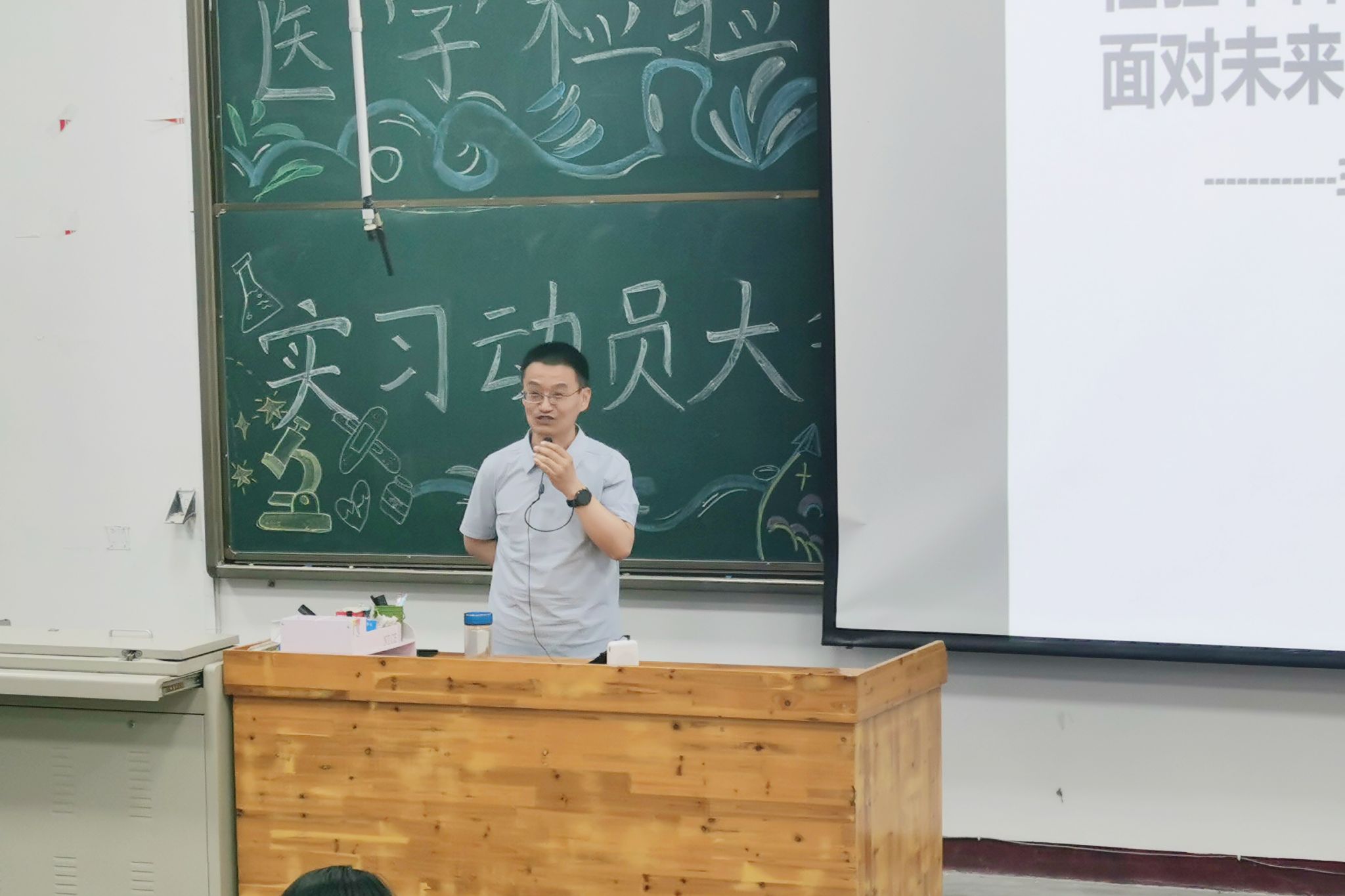 為幫助學(xué)生們明確實(shí)習(xí)目標(biāo)與行動(dòng)方向,扎實(shí)做好2026屆畢業(yè)生實(shí)習(xí)工作,6月3日晚,醫(yī)學(xué)檢驗(yàn)系分別在知新樓1教室和聚成樓11教室舉辦實(shí)習(xí)動(dòng)員大會(huì),醫(yī)學(xué)檢驗(yàn)系系主任張曉延、黨總支副書(shū)記雷亞旭、副主任程凱和張笑添、實(shí)習(xí)班輔導(dǎo)員和學(xué)業(yè)導(dǎo)師、實(shí)習(xí)班全體學(xué)生參加了動(dòng)員會(huì)。
