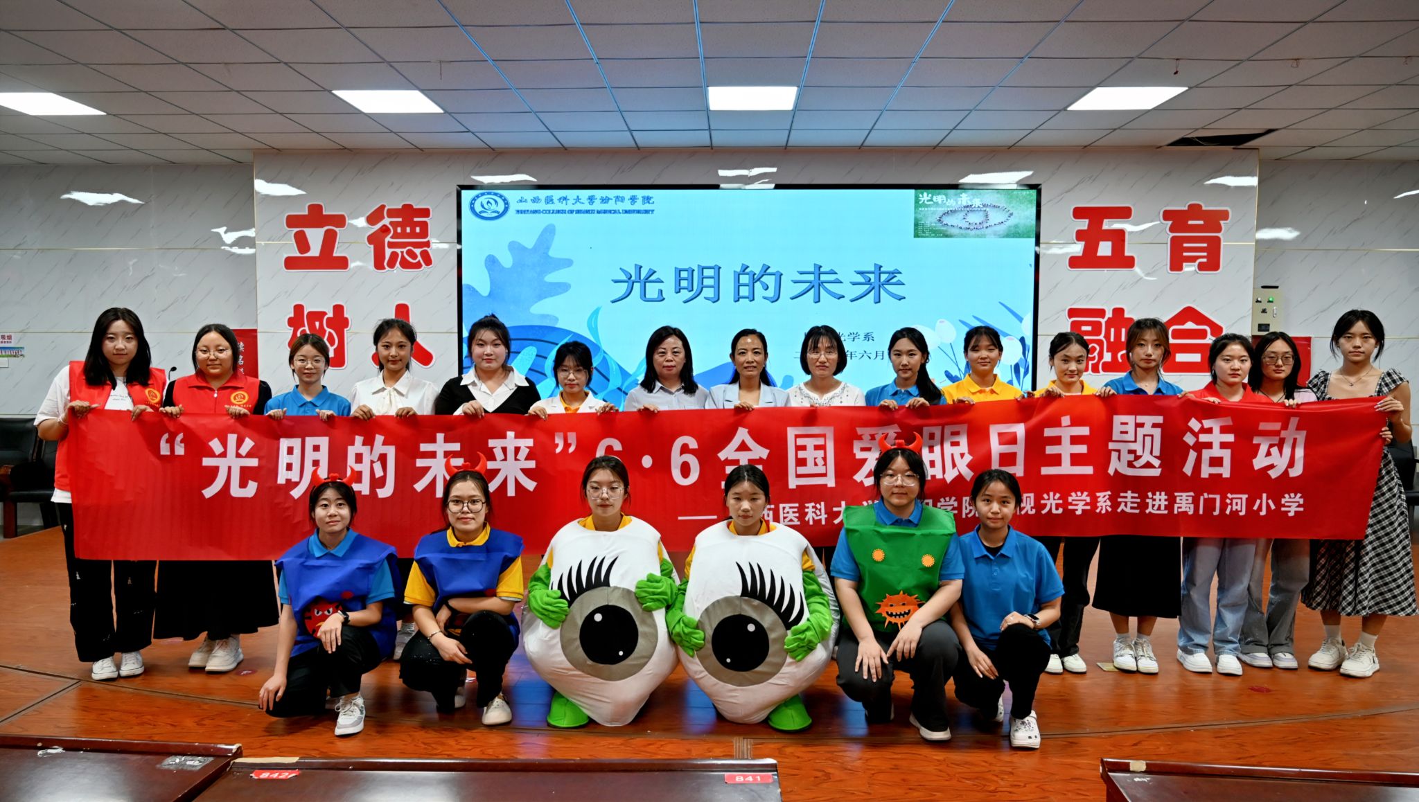 在第30個全國愛眼日到來之際,6月5日,我校眼視光學(xué)系師生走進汾陽市禹門河小學(xué),開展了“光明的未來”6·6全國“愛眼日”主題活動,用青春智慧為孩子們的眼睛健康保駕護航。