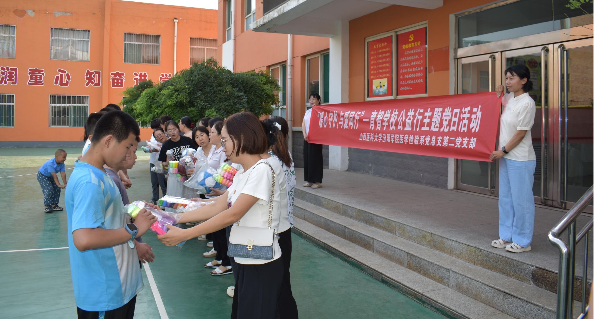 醫(yī)學(xué)檢驗系黨總支第二黨支部全體黨員前往汾陽市育智學(xué)校,開展了主題為“暖心守護,與愛同行”的黨日活動,向育智學(xué)校師生捐贈了精心準備的文體用品、益智玩具、生活必需品等愛心物資,并開展愛心志愿服務(wù)活動。大家分組行動,一部分黨員協(xié)助學(xué)校工作人員清潔與整理教室、活動室、康復(fù)訓(xùn)練區(qū)等場所,另一部分黨員則與孩子們進行游戲互動,為孩子們送上快樂,“以人民為中心的發(fā)展思想”和“全心全意為人民服務(wù)”的根本宗旨在實際行動中得到升華。醫(yī)學(xué)檢驗系黨總支第二黨支部還組織開展了“紅心永向黨,歌聲頌華章”紅歌獻給黨的主題黨日活動。支部全體黨員熱情高漲、踴躍參與,精心擷取了《歌唱祖國》《北京的金山上》《沒有共產(chǎn)黨就沒有新中國》《唱支山歌給黨聽》《我和我的祖國》等跨越革命、建設(shè)與改革光輝歲月的經(jīng)典紅歌,唱響愛黨愛國愛社會主義的時代強音,激發(fā)奮進新征程、建功新時代的昂揚斗志。