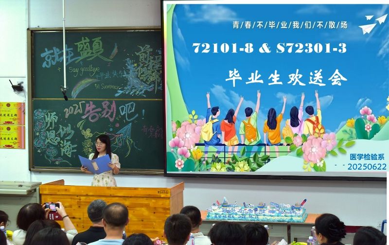 為深情回饋師恩、凝聚同窗情誼、致敬大學(xué)時(shí)光,聆聽老師們的殷切寄語和臨別祝福,激發(fā)同學(xué)們對(duì)未來征程的信心與憧憬,6月22日晚,72101-8班與S72301-3班在知新樓第二教室開展“感念師恩,逐夢(mèng)遠(yuǎn)航”畢業(yè)感恩活動(dòng)。醫(yī)學(xué)檢驗(yàn)系主任張曉延、系黨總支副書記兼S72301-3班輔導(dǎo)員雷亞旭、系副主任程凱、各教研室主任、代課教師、系輔導(dǎo)員團(tuán)隊(duì)、72101-8班輔導(dǎo)員王倩倩和學(xué)業(yè)導(dǎo)師趙秀敏與兩班全體同學(xué)齊聚一堂,共赴這場(chǎng)飽含感恩與祝福的青春盛宴。輔導(dǎo)員王倩倩主持了活動(dòng)。